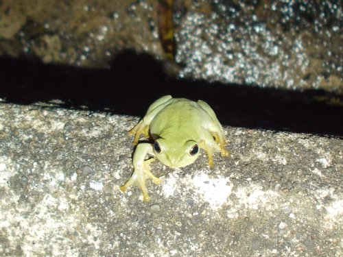 途中ゲリラ豪雨に遭った長浜で出会ったカエルくん。