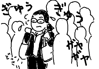何だか悲しい状況……。校長先生らしき人まで,積極的に周りに声をかけていたりして。