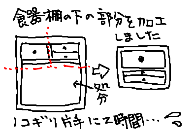 引き出し部分をノコギリ(手動!)で切ってみた。