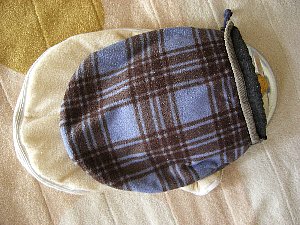 (私はミトンを両手にはめてカバーに入れます)