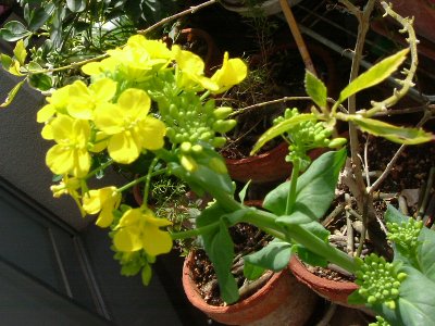 こんなふうに狭いベランダながら鉢を並べていると