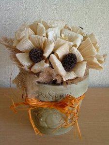 乾いたトウモロコシの皮はしっかりしているのでミニミニリース台を作ったり,