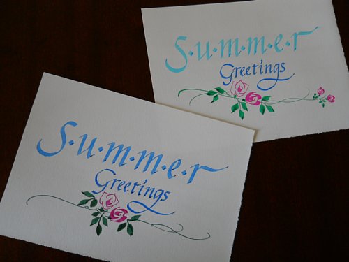 イタリック体の初歩とかわいらしいバラの書き方を学び,