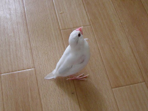 カンちゃん(白文鳥♂)は,ダイちゃん(桜文鳥♂)より早く換羽する。