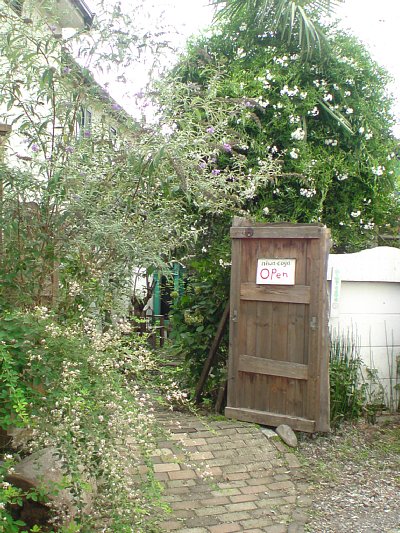 自然な感じの植栽とでこぼこしたレンガの敷石が妙にマッチした