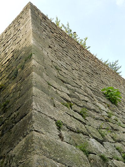 囲んでいる石壁をも突き破るほどの根の張り具合,