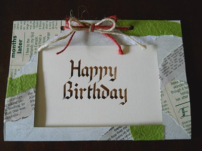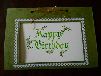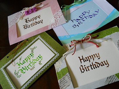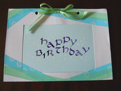 画用紙を半分に折って葉書サイズのカードの額縁として使っています。