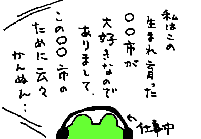 だからぁ,○○市は隣の市で,うちは××市ですからあ