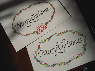 文字部分はペンとインクで,飾り部分はマーカー使用。