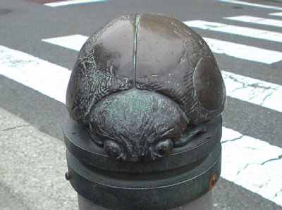 目黒川にかかる”でんどう(田道)橋”の前に何やら丸い物体が。