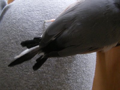 昨日の真ん中の古い羽が抜けてかんちゃんと色違い状態です。