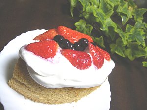 昨日焼いた紅茶のシフォンケーキです。(葉は入れませんでした) 私が焼くケーキは相も変わらずこればっかり 皆の希望でデコレーションはせず、 おのおの好きなものを載せて食べようということになり、 私はこんな感じでトッピングをして食べました。 ____あれ?正月前なのにもはやウエスト部分がきついような・・・・・ 今晩から”Wii Fit”のメニューを増やさねば。 何はともあれとりあえず、