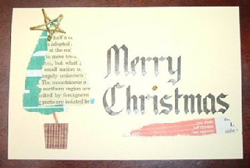 先日の日曜日に年賀状を印刷しようとしたら カラーインクが切れていてせっかくのやる気も消え失せ その後アマゾンからインクが届いたというのに いまだ年賀状印刷ができていません その上、クリスマスカードもまだ今年は1枚も書けてません。 なので、とりあえず(何がとりあえずなんだか)ずっと以前書いたものを載せます。 金色の筆ペンで装飾しています。 英字新聞を手でちぎって貼ってみました。 ☆の部分はワイヤーで作っています。 やらなければいけないlことは山積みのような気はしていても 別に全部やんなくても死にはしないんだよね。 いや、いや、それはやっぱりだめでしょう。 まずはインクを替えようっと