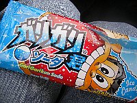 昨日,降ったりやんだりの天候の中 夫に誘われて相模湖上流へ。 まずは買い出し&トイレを済ませようとコンビに寄ったところ レジでくじを引かされ,こんなものが当たっちゃいました。 薄ら寒い中 夫婦で押しつけ合って食べました。 真夏ならウレシーけど こんな日に限ってだよね~。 そして,夫曰く都内では買えないらしいパンがこちら。 パンの間にクリームがはさんである上 値段の割に大きくて,とてもおいしかったです。 薄ら寒さが伝わるかな? そんで,これが2時間の釣果なり。 (アユ5匹) 今度は,もうちょっと気温の高いときに行きたいですな
