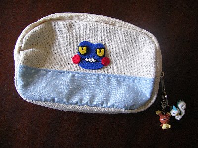 ポケモン好きの娘用にと100均で買ったゲーム機専用ポーチ。 それだけでも十分100均に見えないくらいかわいいけど オリジナリティーが欲しくてちょこっと細工してみました。 材料:子供が家庭科の授業で使ったフェルトの残り,刺繍糸 な,ないほうがよかったかも…… と落ち込み気味に娘に見せたら ”グレッグル好きなんだよね~”と意外に喜んでくれました。 なんかミスマッチな感じが自分でもウケるぅ