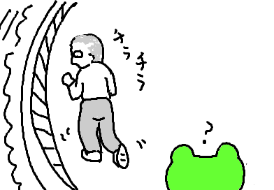 柵沿いに頻繁に後ろをチラ見。 これって何かの健康法? 逆にストレスがたまるような気がする……